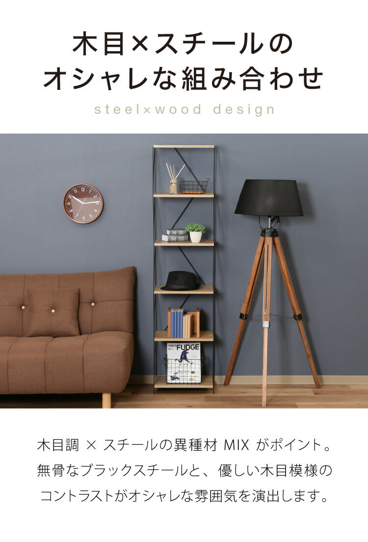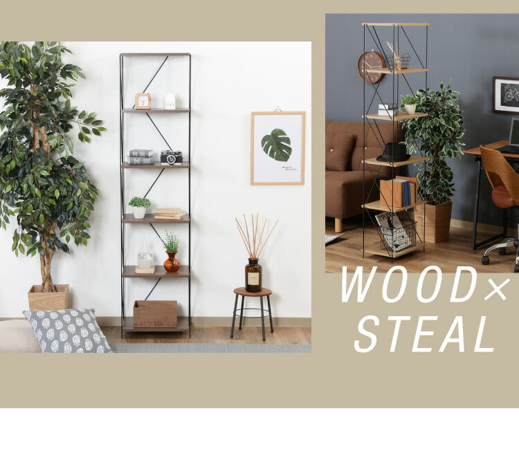 木目調の棚板とブラックスチールのワイヤーフレームで、空間をカッコよく見せてくれます。