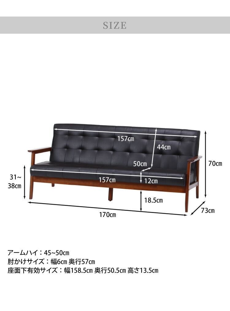 幅170×奥行73×高さ70cm (座面高さ:38cm)