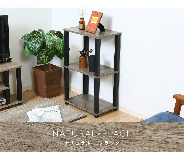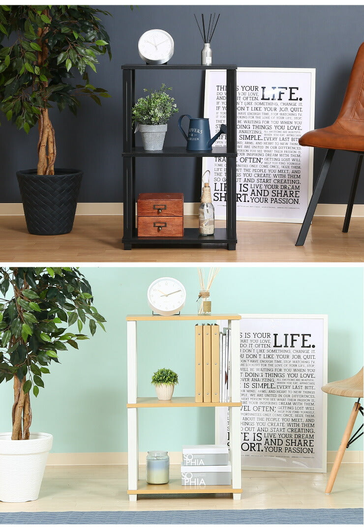 組立簡単 オープンラック 棚 シェルフ 3段 幅47 奥行30 スリム 収納 木製 木目 キッチン リビング ディスプレイ サイドテーブル
