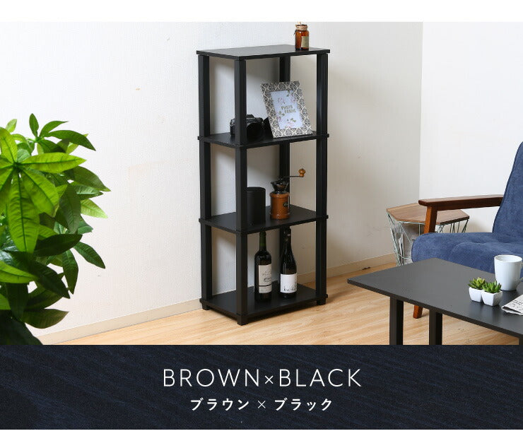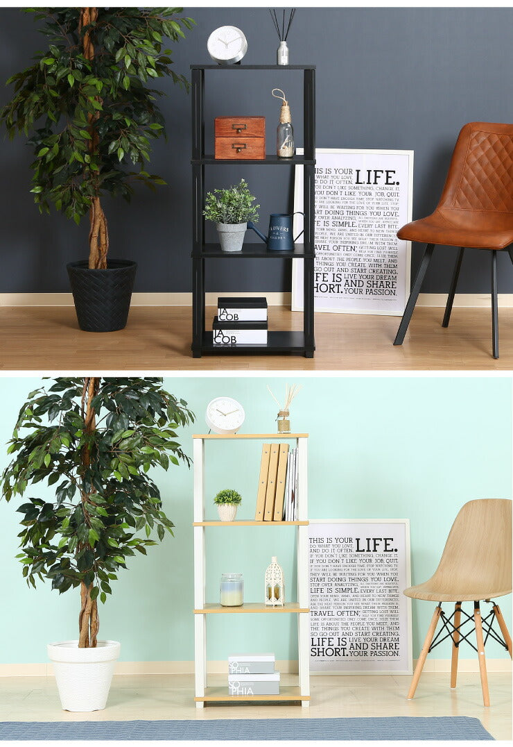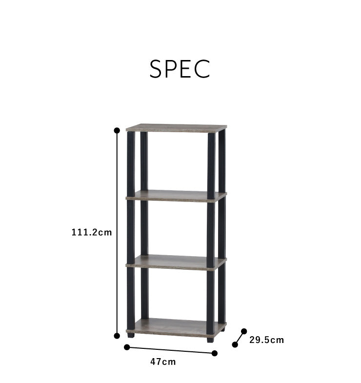 組立簡単 オープンラック 棚 シェルフ 4段 幅47 奥行30 スリム 収納 木製 木目 キッチン リビング ディスプレイ サイドテーブル