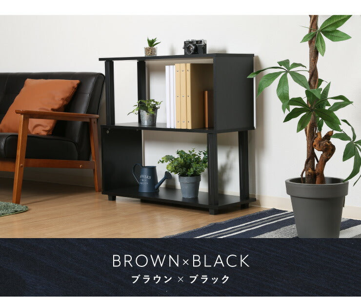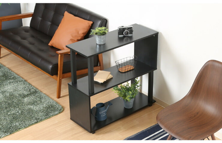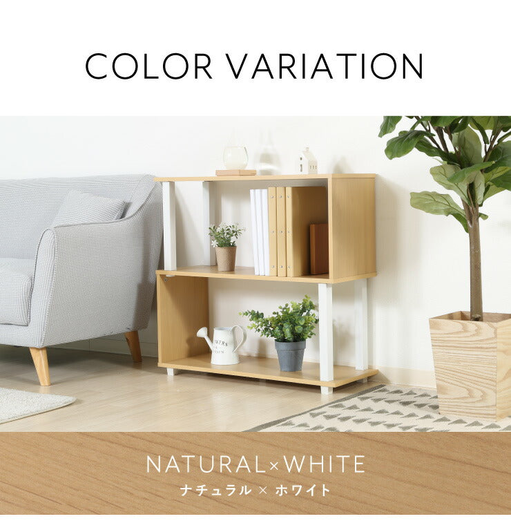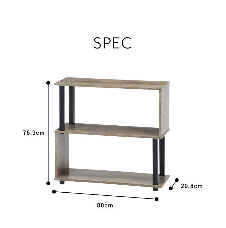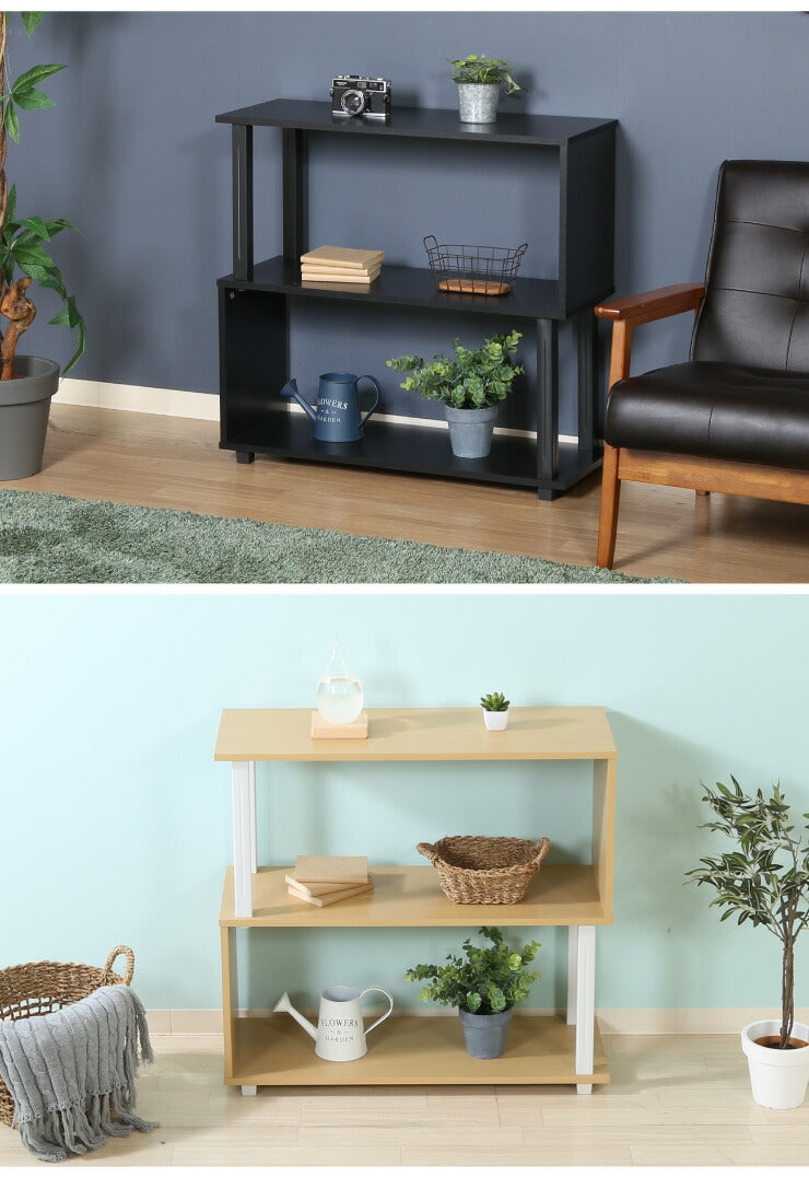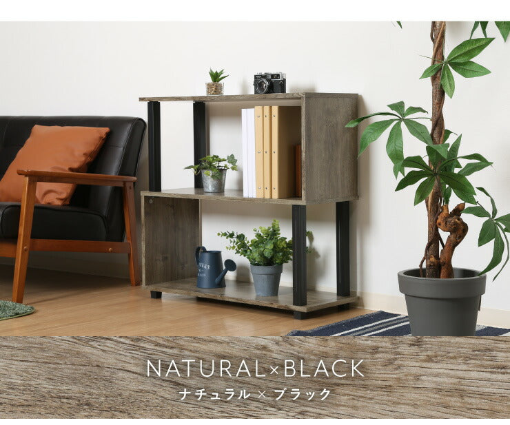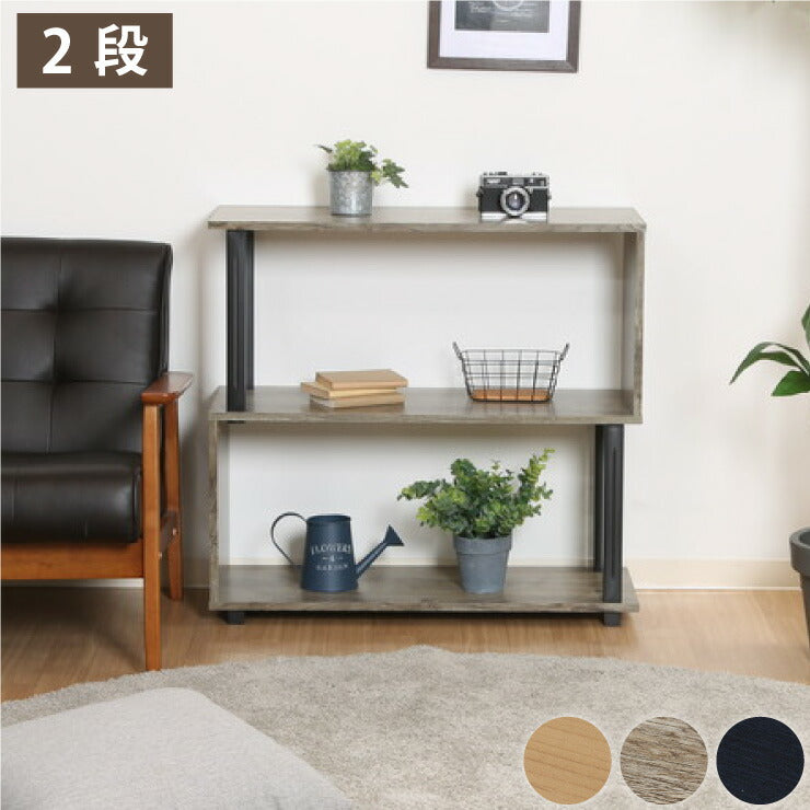 組立簡単 S字ラック オープンラック 2段 幅80 奥行30 スリム 収納 木製 木目 キッチン リビング ディスプレイ サイドテーブル