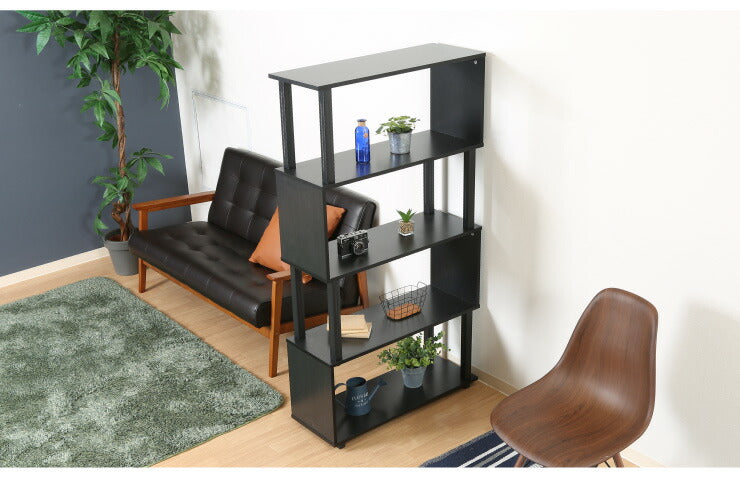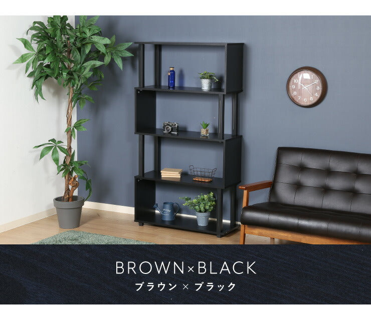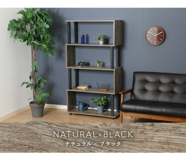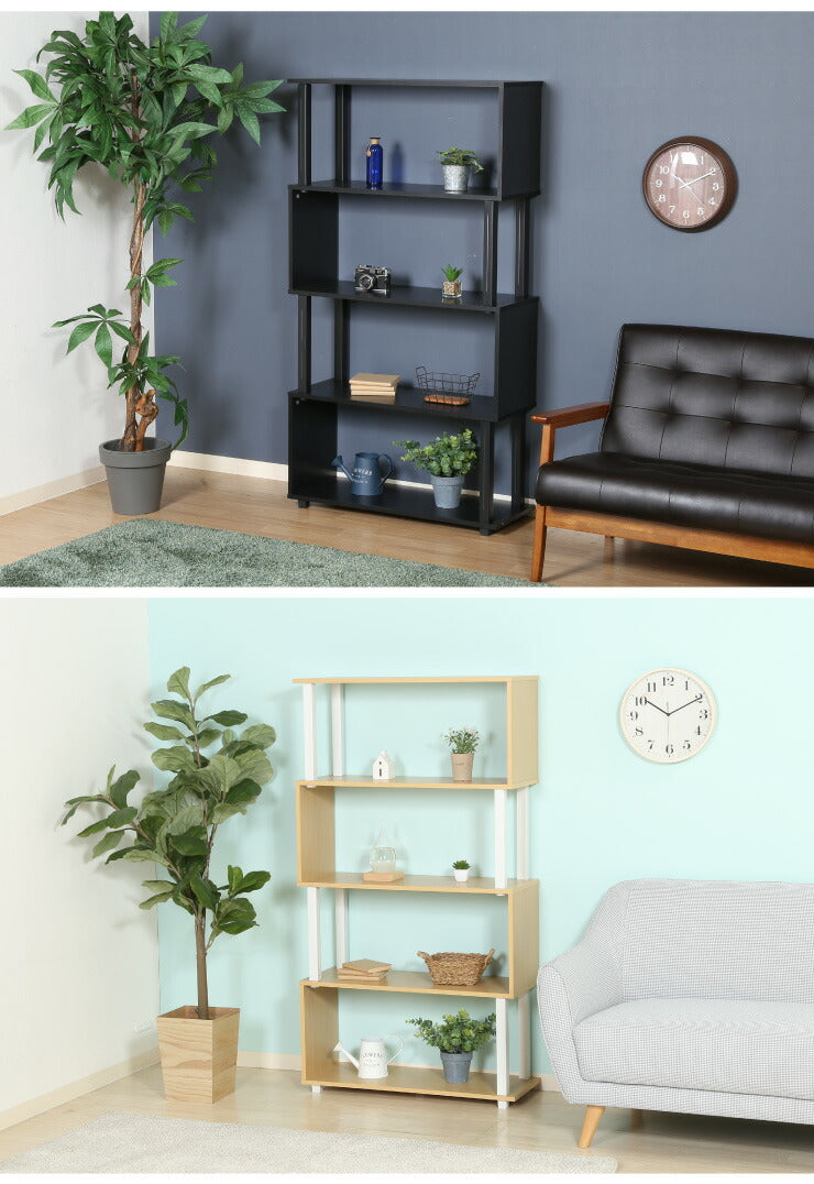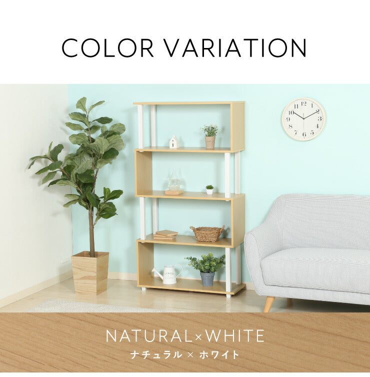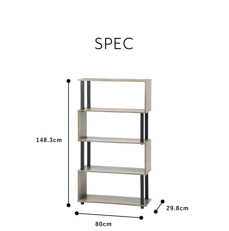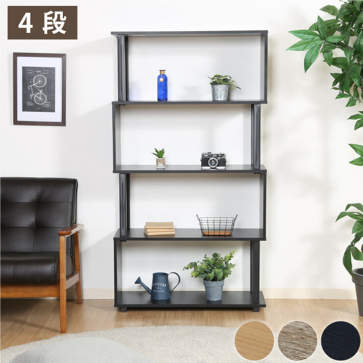 組立簡単 S字ラック オープンラック 4段 幅80 奥行30 スリム 収納 木製 木目 キッチン リビング ディスプレイ サイドテーブル