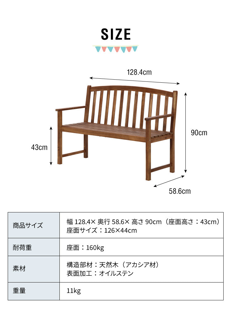 ベンチ ガーデンベンチ 幅128 ガーデンファニチャー ガーデンチェア 雨ざらし おしゃれ ガーデニング テラス アウトドア バルコニー 木製 アカシア(代引不可)