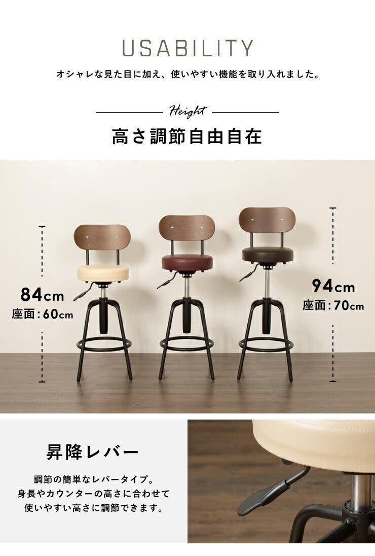 バースツール 背付 回転チェア カウンターチェア 背もたれ バーチェア レトロ モダンチェア ハイチェア レトロ チェア スツール(代引不可)