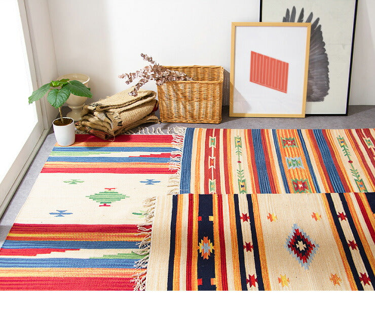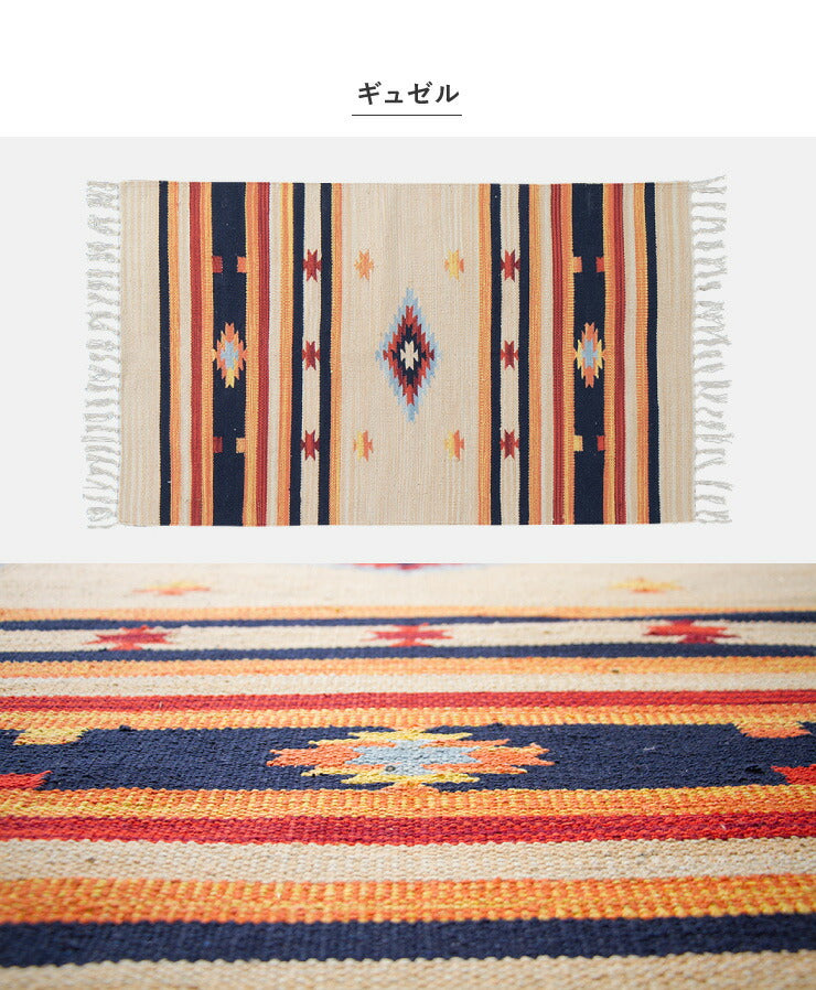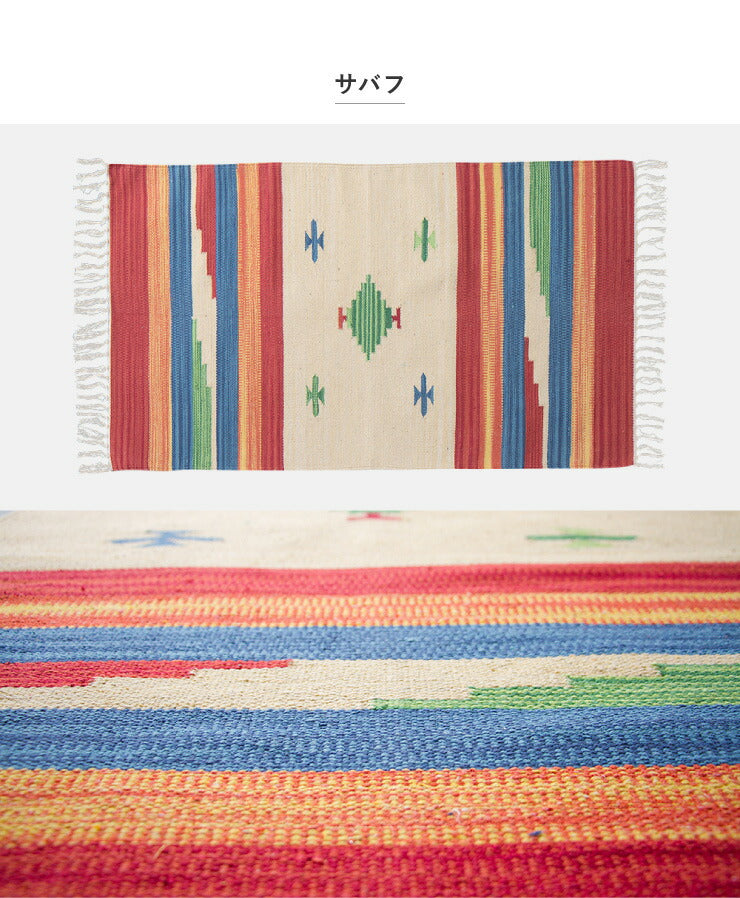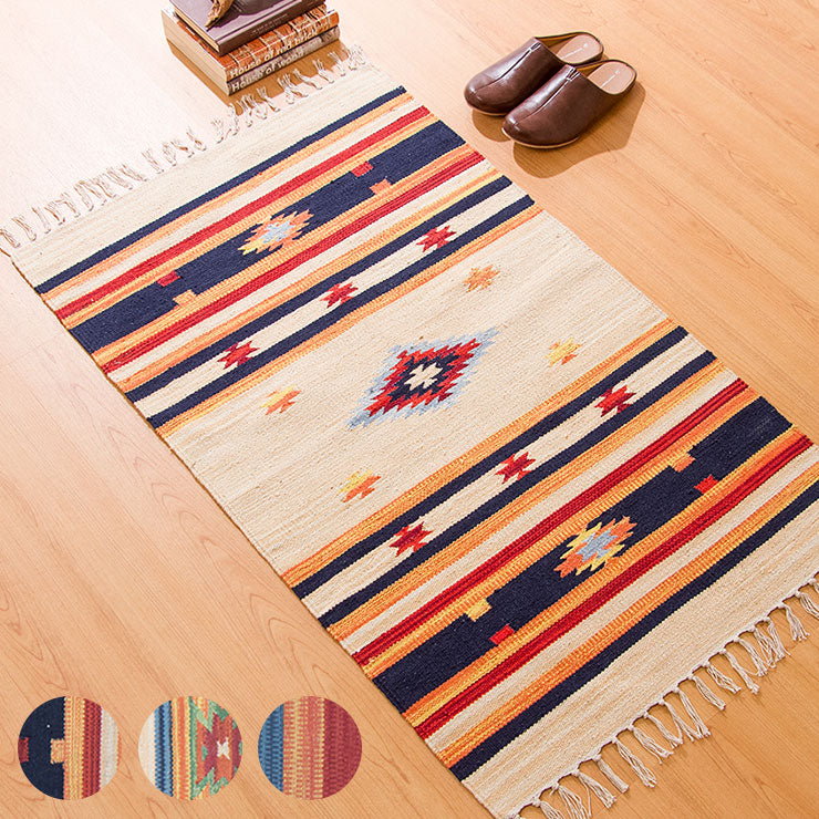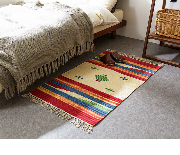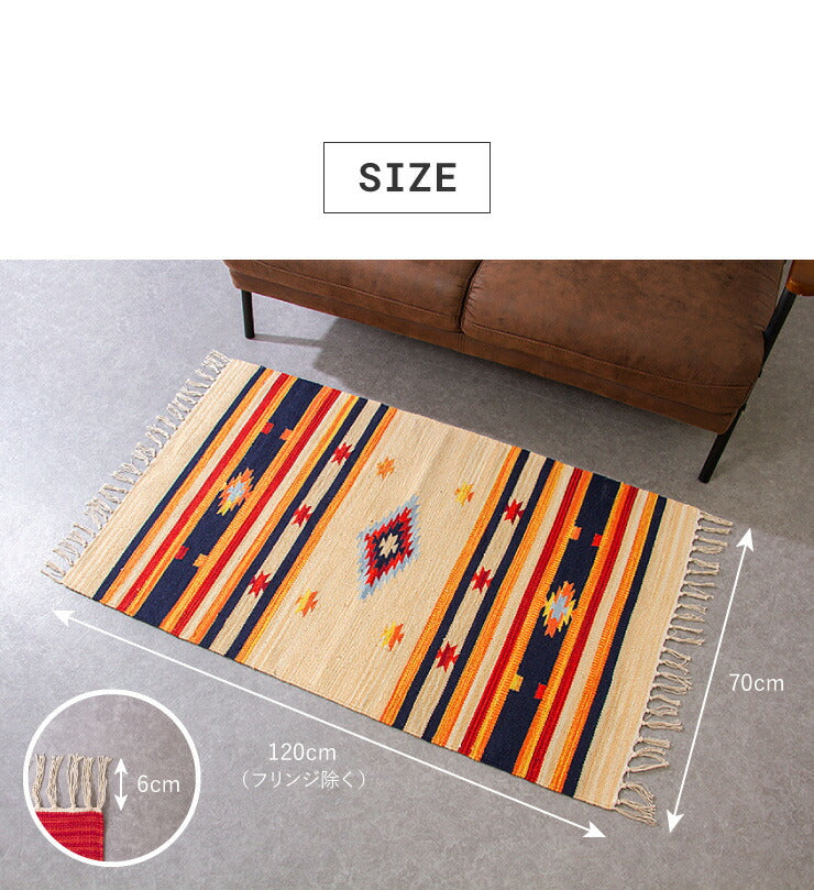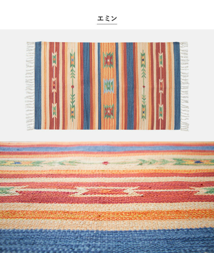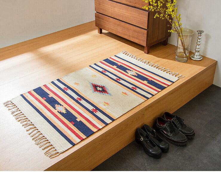 キリム コットンマット 70×120 ラグ ラグマット アジアン インド 玄関マット キッチンマット バスマット 洗える 長方形