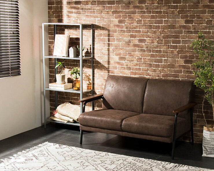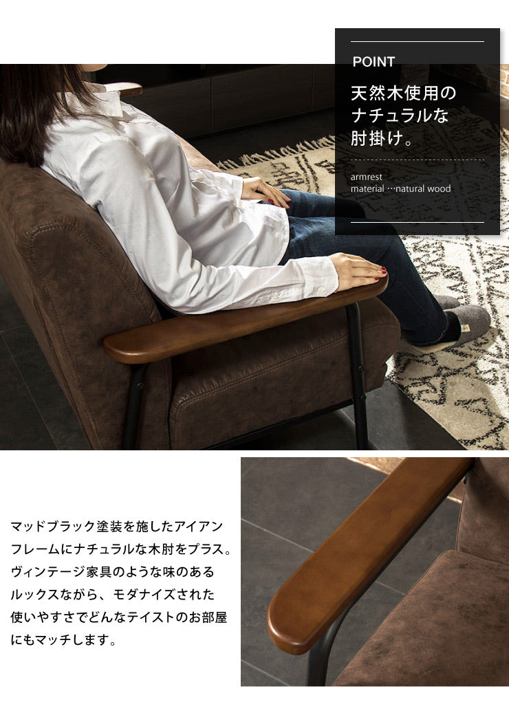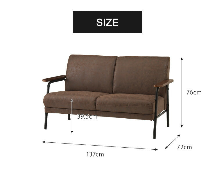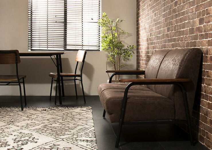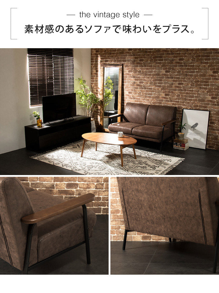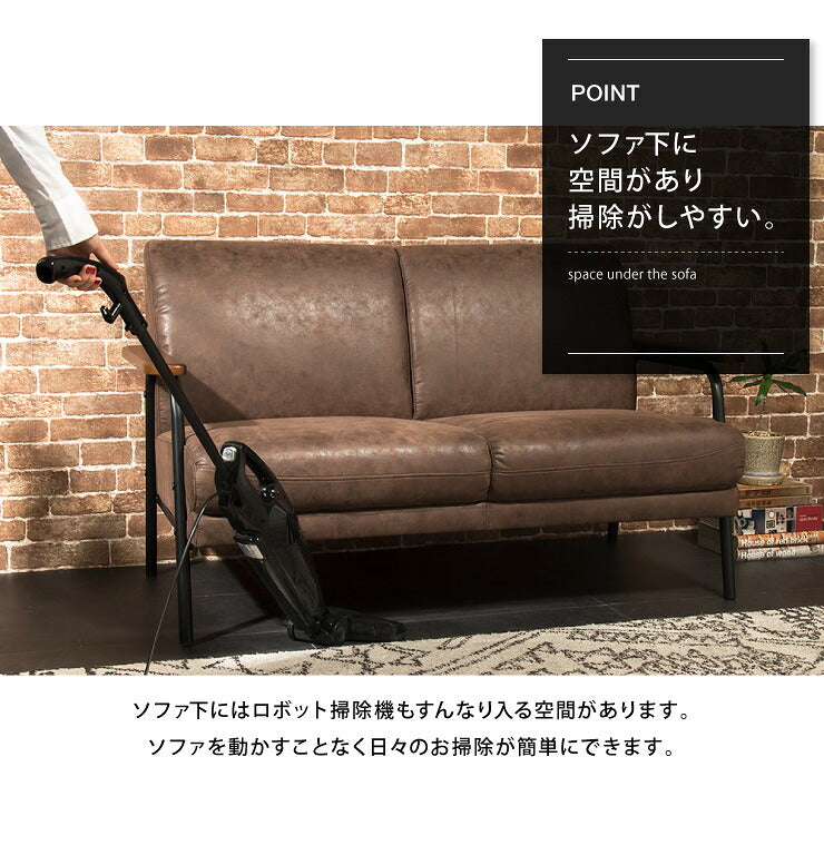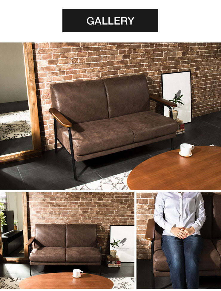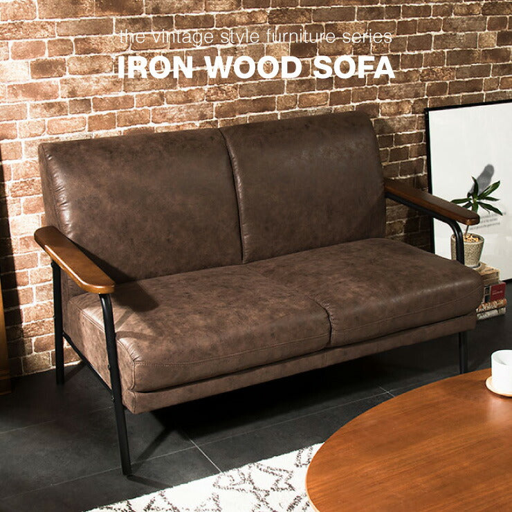 アイアンウッドソファ 合皮タイプ 2人掛け 木肘 PVC レザー インダストリアル アイアン 木製 ソファ ソファー シンプル 二人掛け
