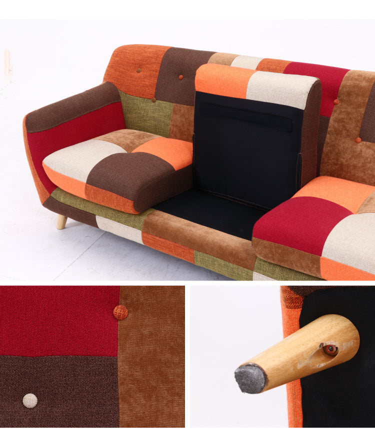 カラフルな生地をランダムに組み合わせた、オシャレなパッチワークソファです。