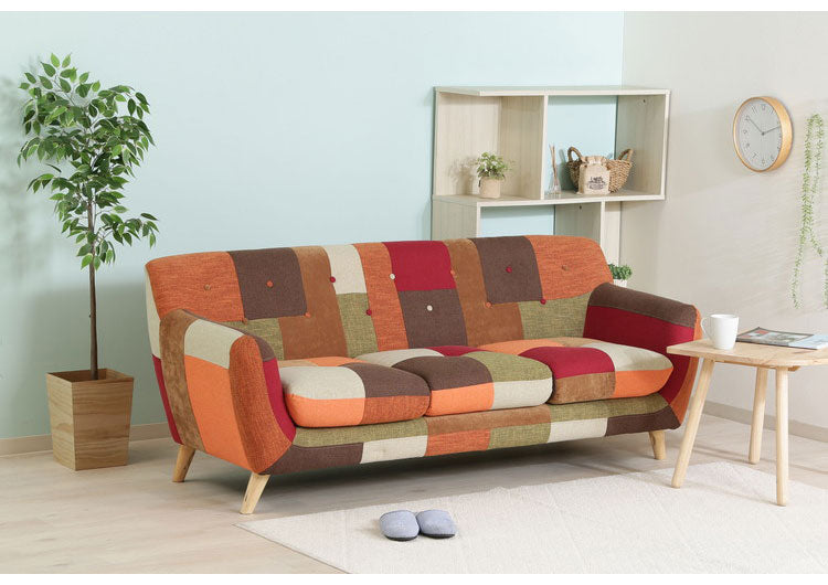 ソファ 3人掛け 幅182 パッチワーク おしゃれ 北欧 ファブリック カフェ ソファー sofa 三人掛け 3P ローソファ フロアソファ かわいい(代引不可)