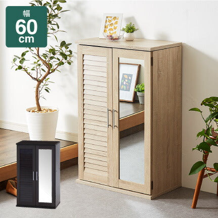 下駄箱 シューズボックス ミラー付き ルーバー扉 幅60 奥行35 高さ93 シューズラック 鏡 靴箱 消臭 ルーバーシューズボックス