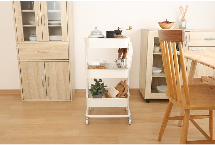 ワゴン 高さ調節可能 3段 収納ワゴン 組立簡単 ねじ不要 キャスター付き 収納ラック ナチュラル バスケット 可動式 トローリーワゴン(代引不可)
