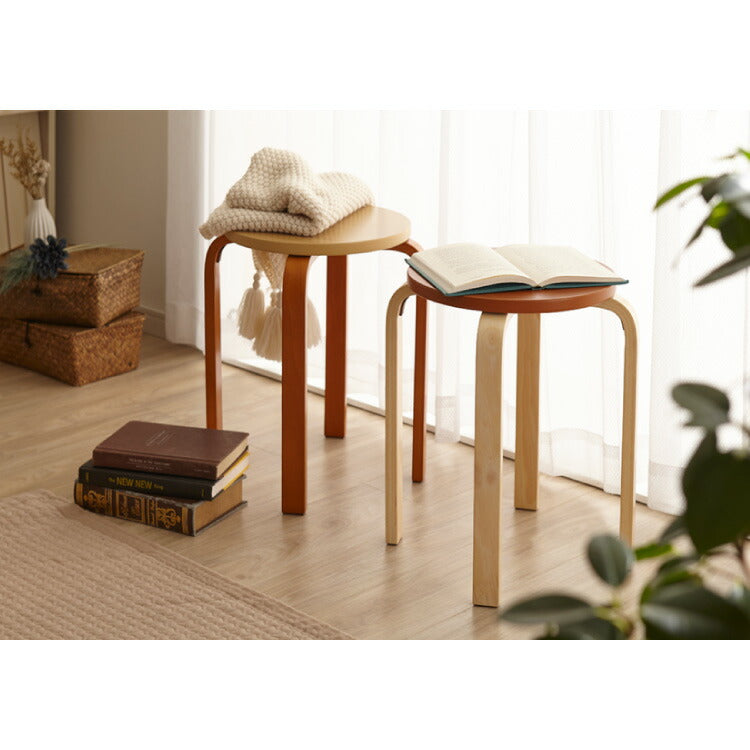 スツール 木製 単品 曲脚イス シンプル ウッド リビング オフィス おしゃれ チェア 椅子 丸いす 丸椅子 丸イス スツール スタッキングチェアー イス いす