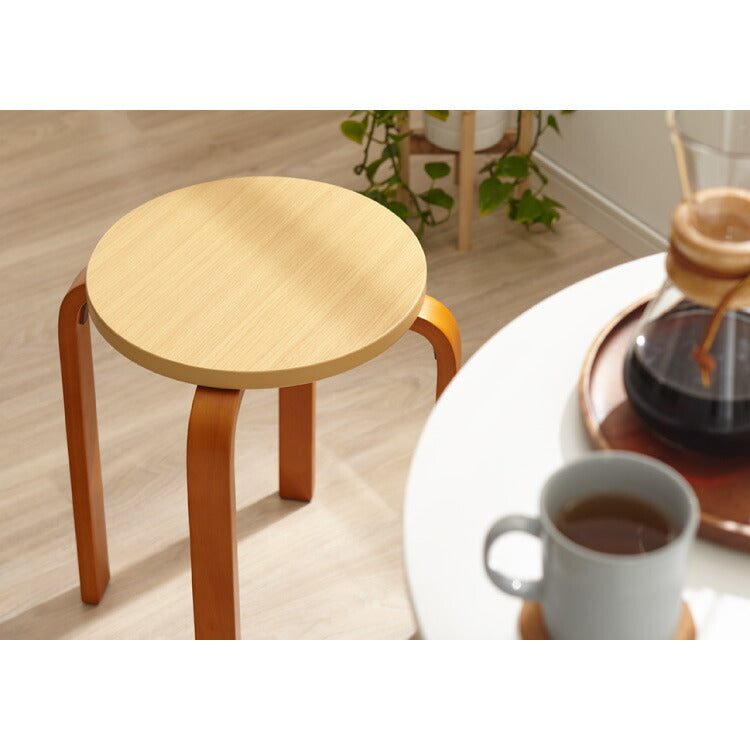 スツール 木製 同色6脚セット 曲脚イス シンプル ウッド リビング オフィス おしゃれ チェア 椅子 丸いす 丸椅子 丸イス スツール スタッキングチェアー イス いす