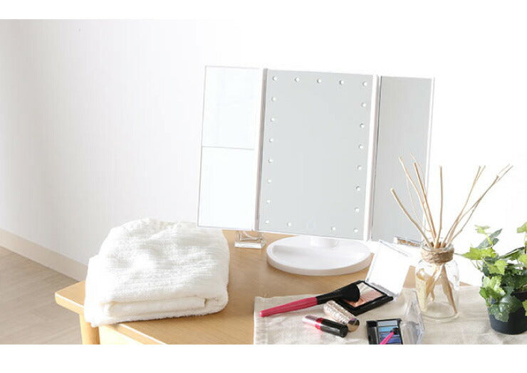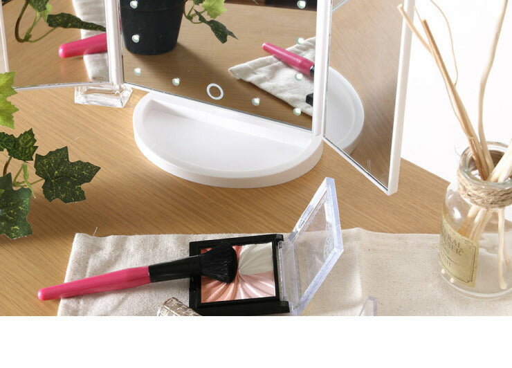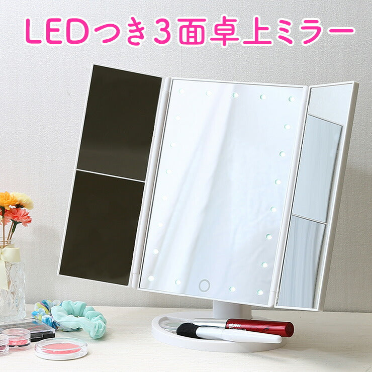 卓上ミラー ライト付き 三面卓上ミラー 幅18cm 三面鏡 180°無段階調整 2倍 3倍 拡大鏡 LEDライト付き USB コードレス ホワイト おしゃれ かわいい 3面鏡 スタンドミラー 化粧鏡 メイクミラー