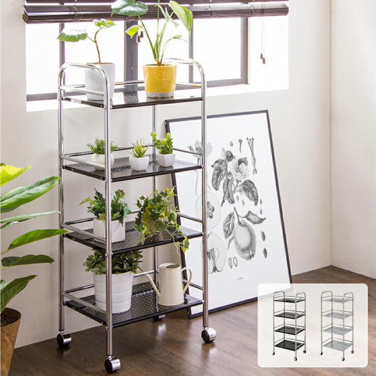 マルチワゴン 4段 キッチンワゴン キッチン収納 台所 食器棚 ラック キッチン キャスター付き キャスター ワゴン レンジワゴン ブラック(代引不可)