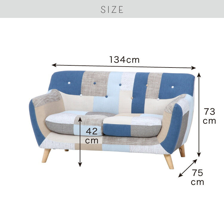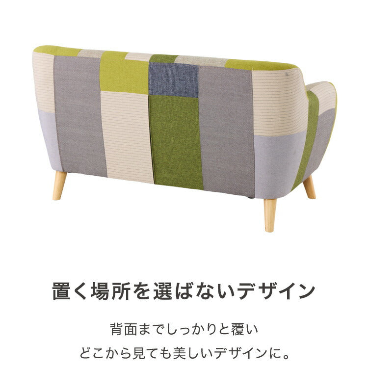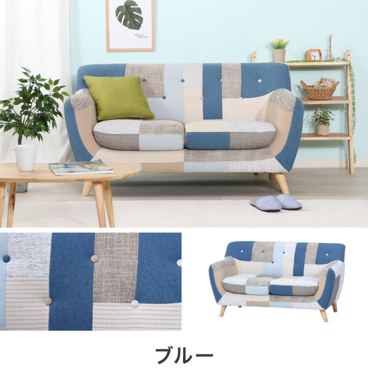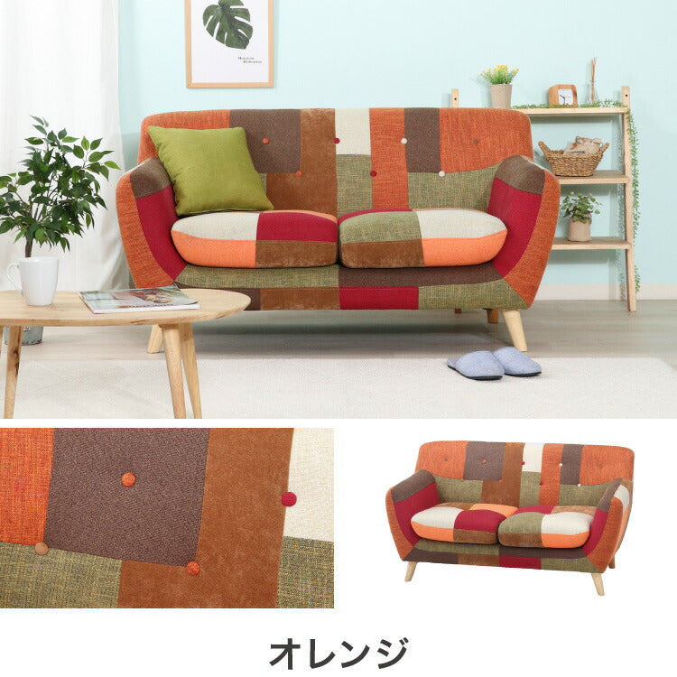 ソファ 幅135cm パッチワーク カラフル おしゃれ 2人掛け かわいい 北欧 リビングソファ ローソファ ファブリック 肘掛けあり 弾力 新生活 グリーン ブルー オレンジ ネイビー(代引不可)