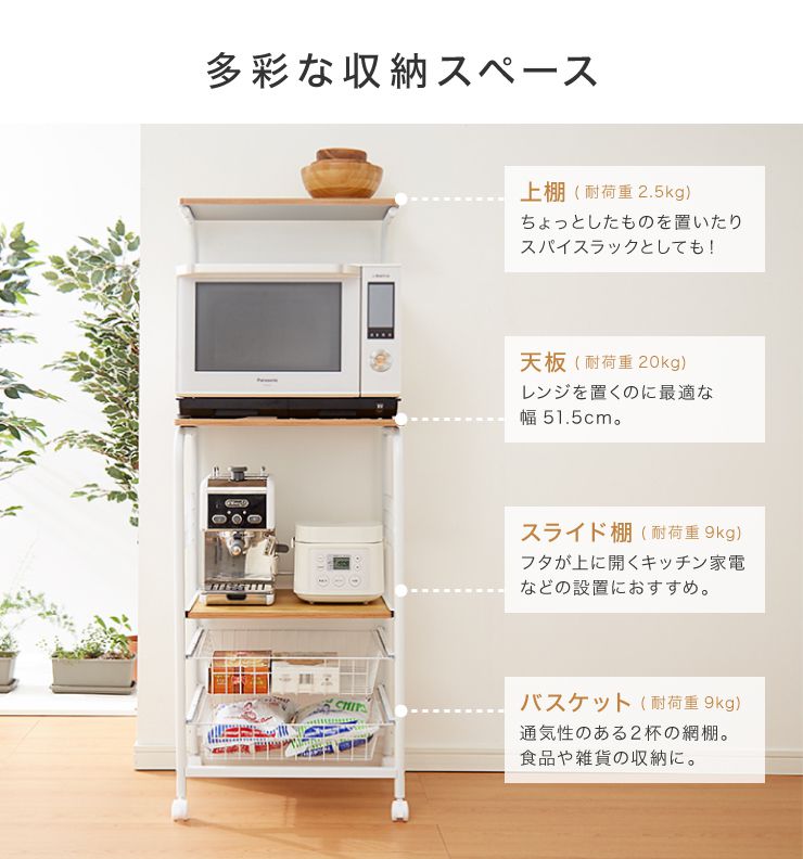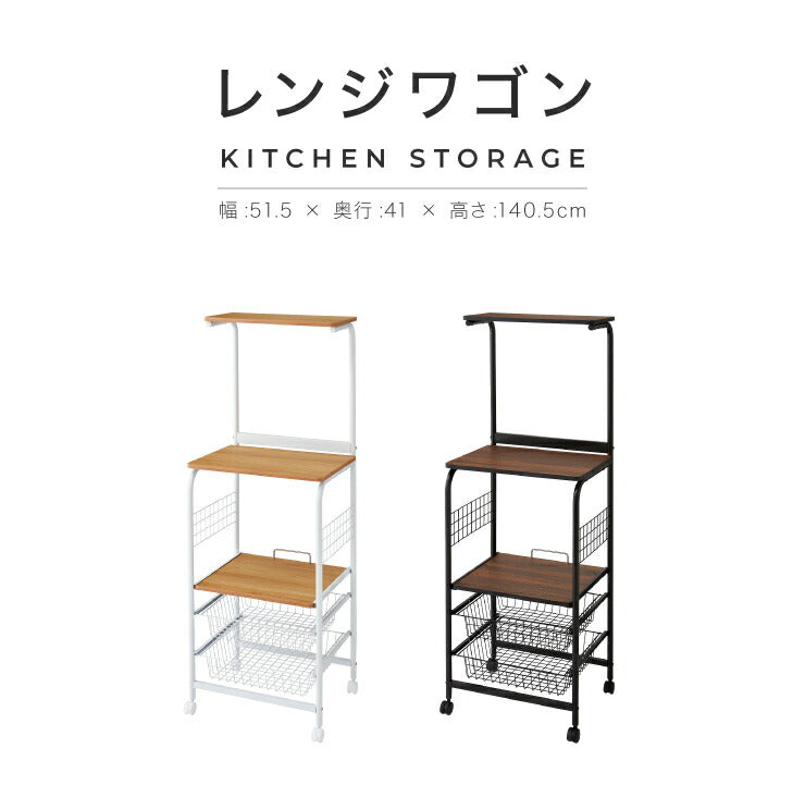 レンジワゴン 幅51.5cm 高さ140.5cm キャスター付き レンジ台 レンジボード レンジラック キッチンラック ラック キッチン収納(代引不可)