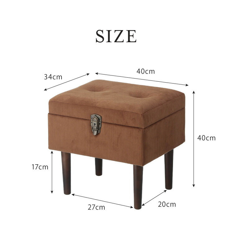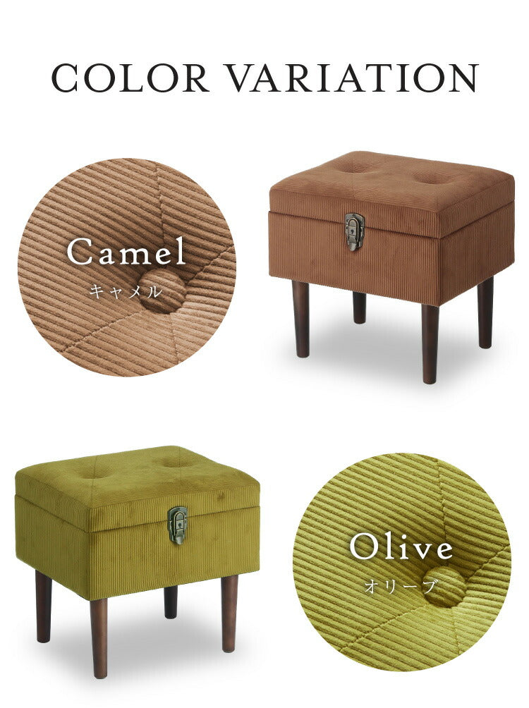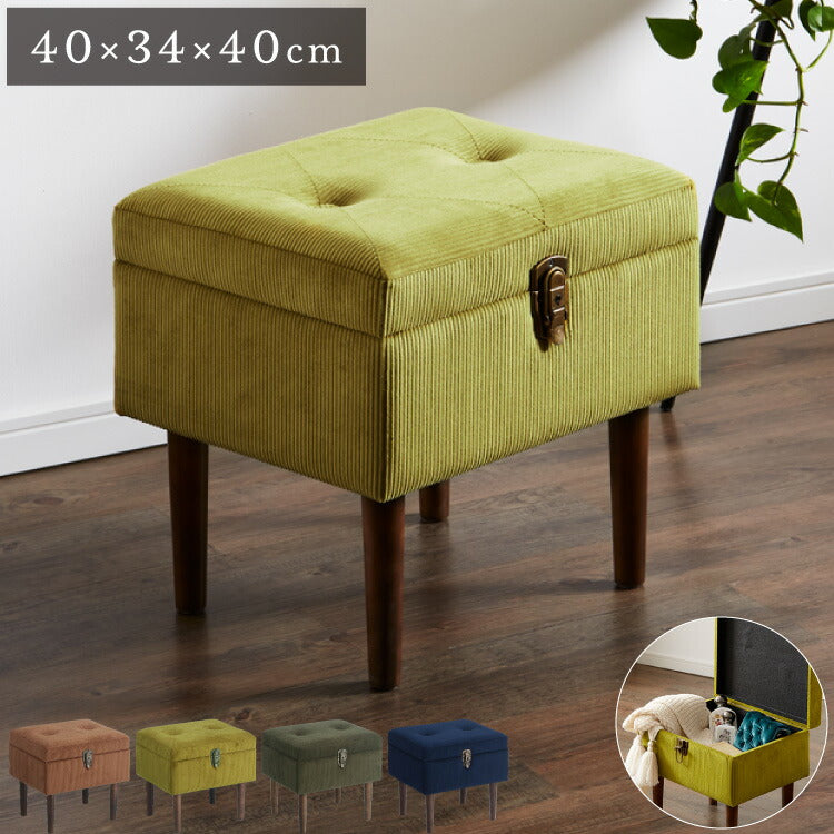 トランクスツール コーデュロイ 幅40cm トランク型 収納スツール 収納ボックス オットマン ビロード ファブリック 腰掛 腰掛け かわいい おしゃれ お洒落 収納付き フタ付 蓋付 玄関 リビング