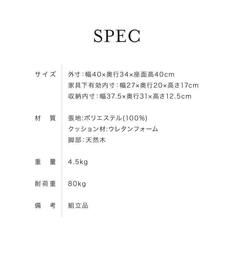座面下収納内寸:横幅37.5×奥行31×高さ12.5