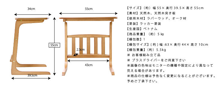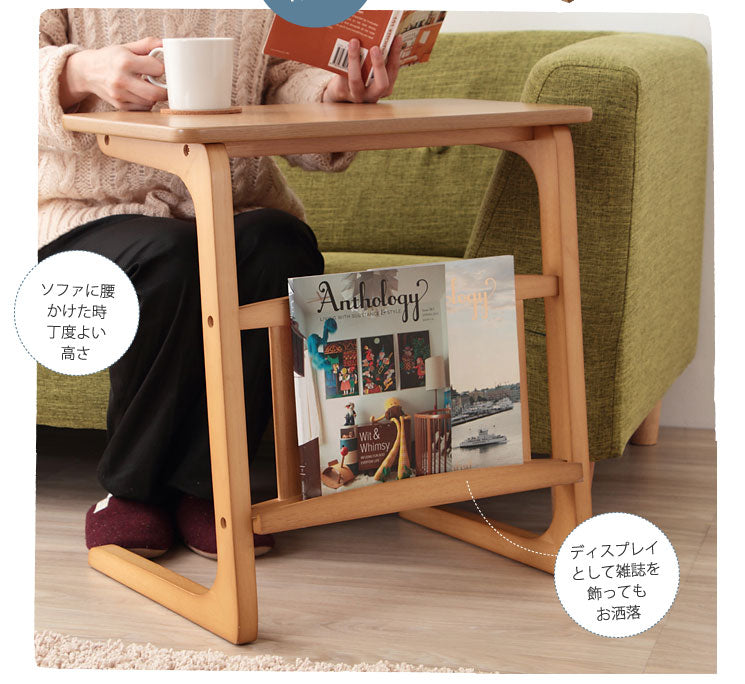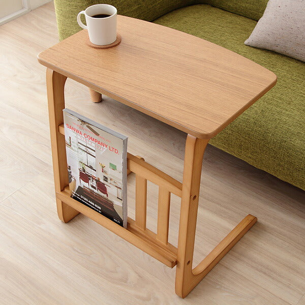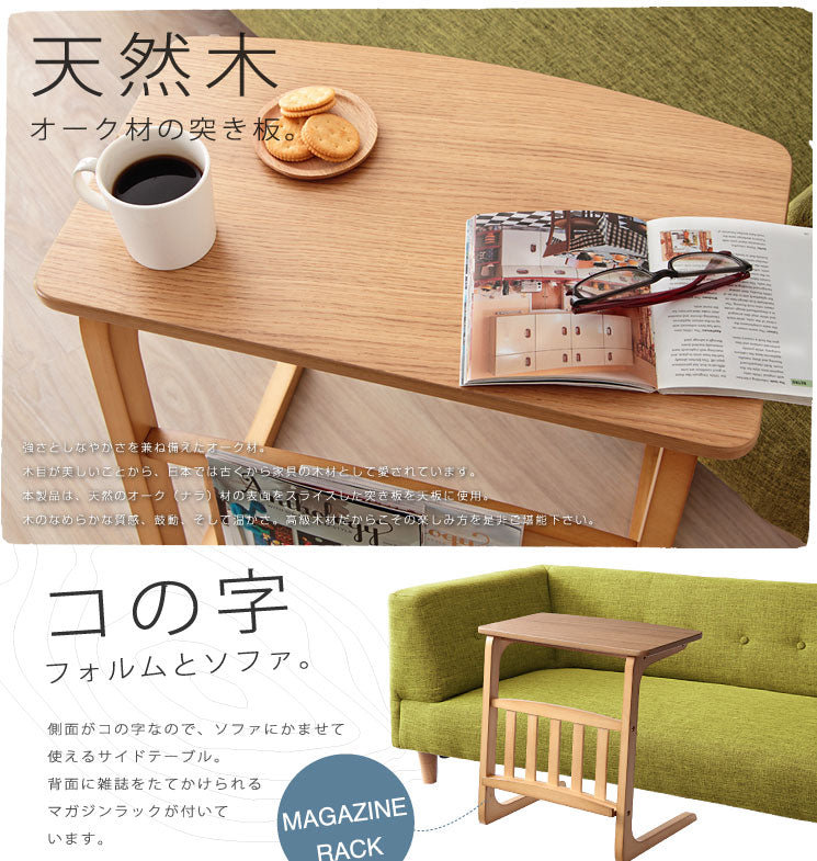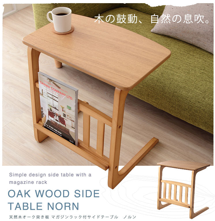 天然木オーク 突き板 マガジンラック付サイドテーブル【Norn】ノルン
