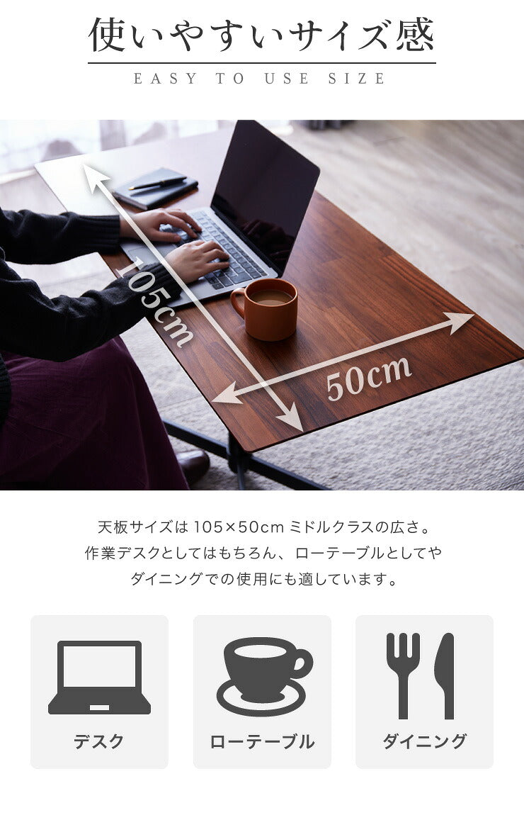 昇降式テーブル 昇降 ダイニングテーブル 木製 ウォールナット アカシア おしゃれ 幅105 奥行50 高さ42~60 テーブル デスク