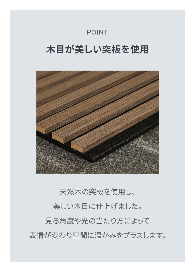 天然木の化粧を施し、インテリアに自然と溶け込む吸音ウォールパネルです。