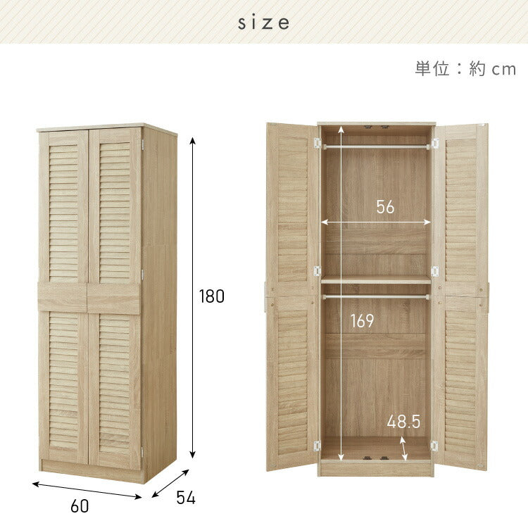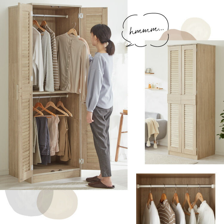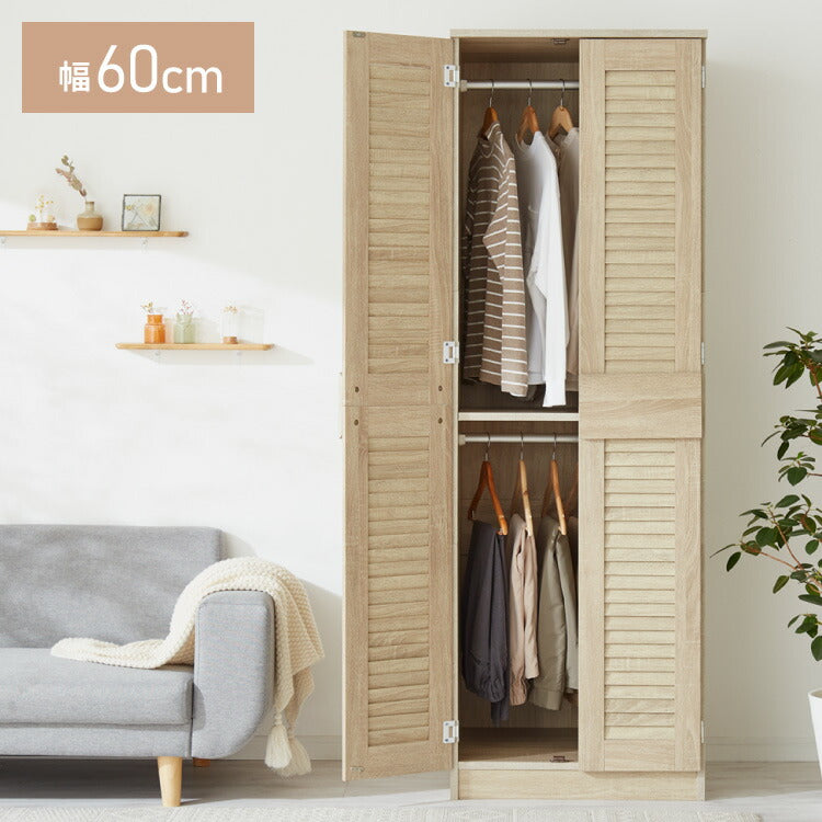 クローゼット ワードローブ ルーバー 幅60 奥行53 収納 ハンガー 棚 2段 衣服 アウター 収納 箪笥 タンス おしゃれ 北欧 大容量 オーク 木製 木目 リビング 収納棚