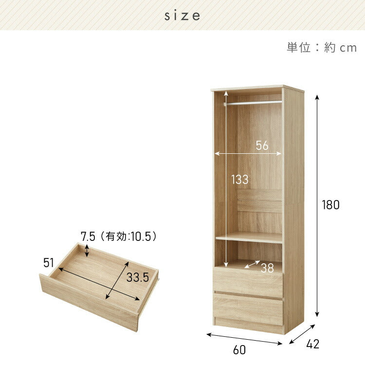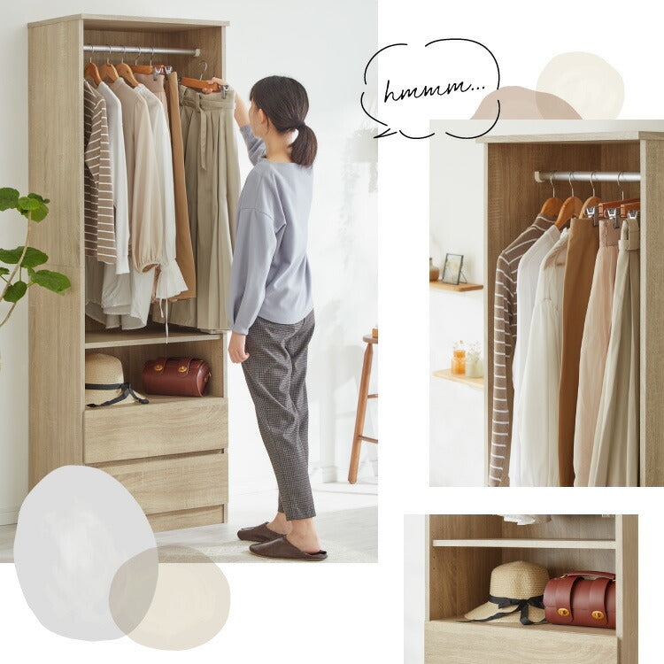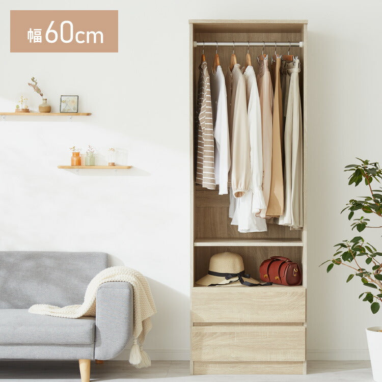 クローゼット ワードローブ 幅60 ハンガーラック ハイタイプ 収納 ハンガー 棚 衣服 アウター 収納 箪笥 タンス おしゃれ 北欧 大容量 オーク 木製 木目 リビング 収納棚