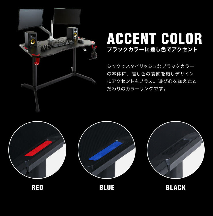 ゲーム用デスクとしても通常デスクワークも可能なシンプルデザイン。