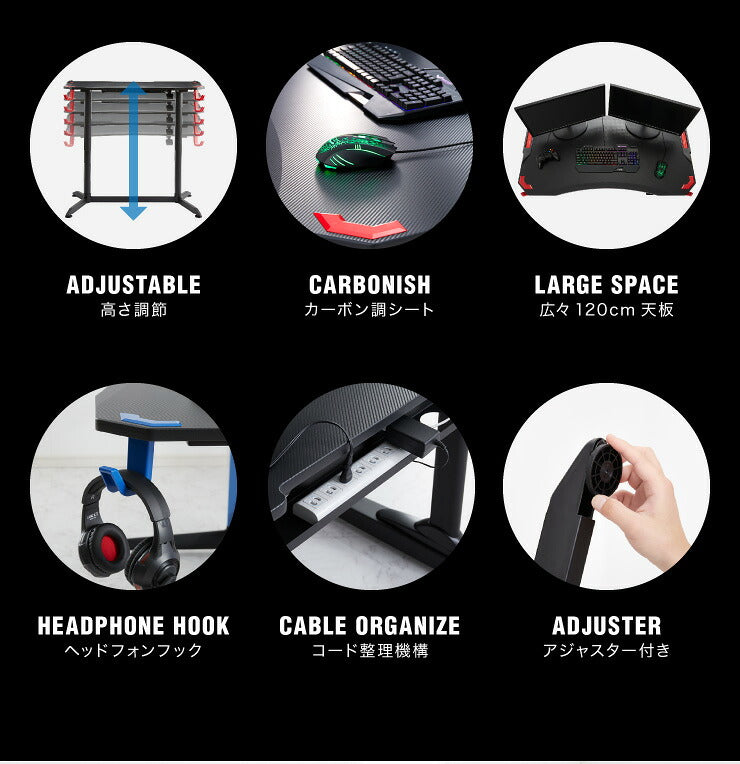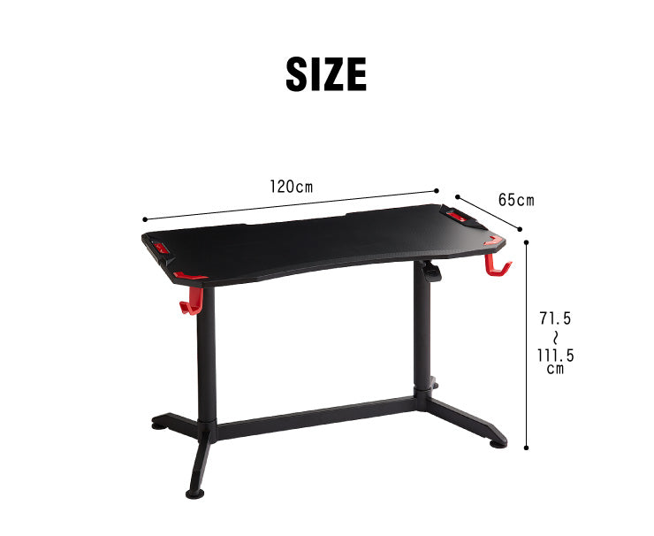 ガス圧昇降式ゲーミングデスク 幅120cm ハイタイプ ゲーミングデスク ゲームデスク 昇降式 デスク スタンディングデスク(代引不可)