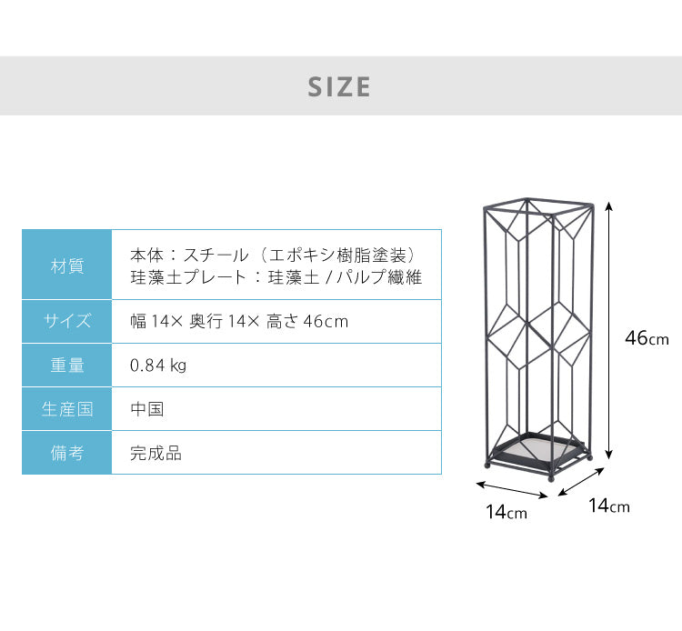 傘立て 珪藻土 アスベスト検査済み アンブレラスタンド スクエア 四角形 おしゃれ 傘置き 玄関 収納 省スペース スリム 北欧 アイアン