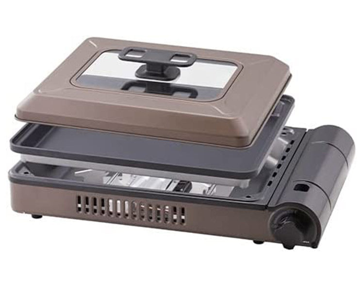 カセットボンベが燃料のガス式ホットプレート。電気を使わないコードレスだから使う場所を選びません。