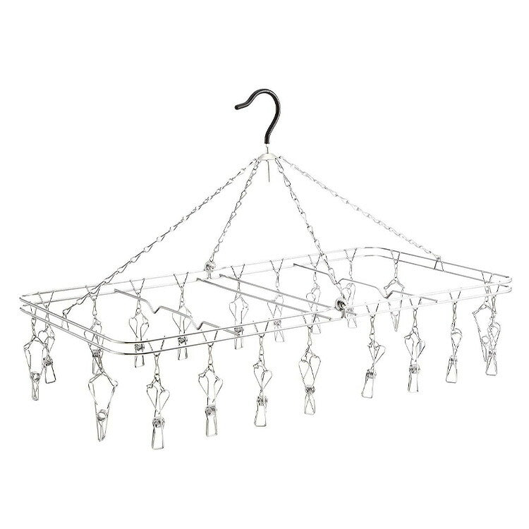 従来のハンガーは開くとき、ピンチがからまりやすく不便でしたが、ピンチをつるす鎖を工夫することで、この問題が解決されています。