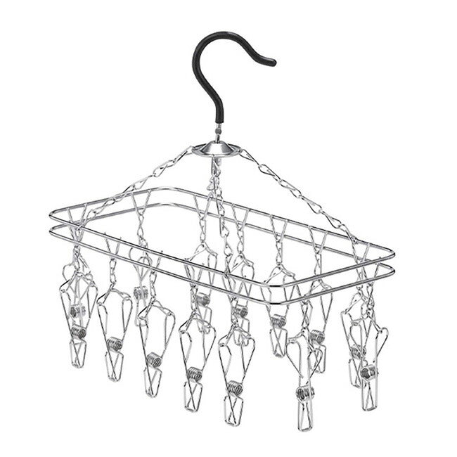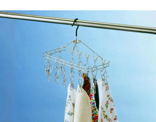従来のハンガーは開くとき、ピンチがからまりやすく不便でしたが、ピンチをつるす鎖を工夫することで、この問題が解決されています。