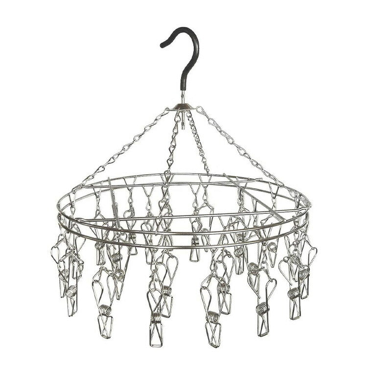 少量洗濯干し、室内干しに便利な大きめの丸型ステンレスハンガーです。内側に下着を干し、外側でタオルなどを干して隠し干しができるのも大きな特徴です。