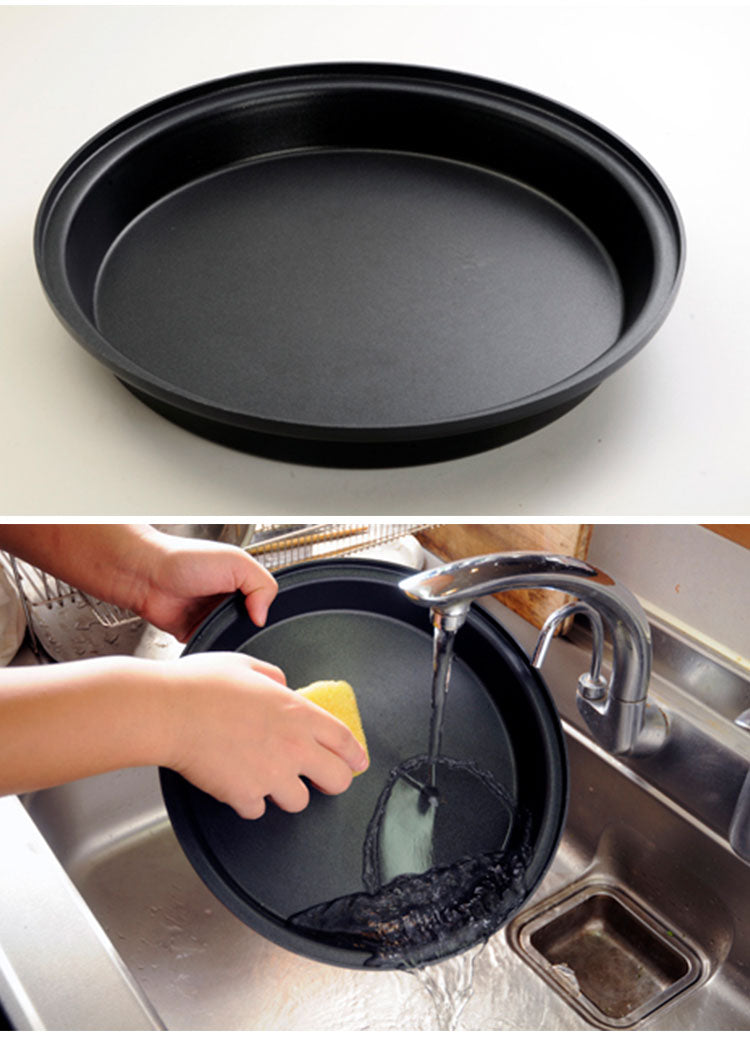 プレートにはフッ素樹脂加工を施し、焦げ付き・こびりつきが少なく、お手入れも簡単!