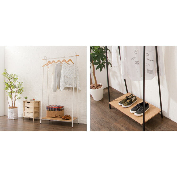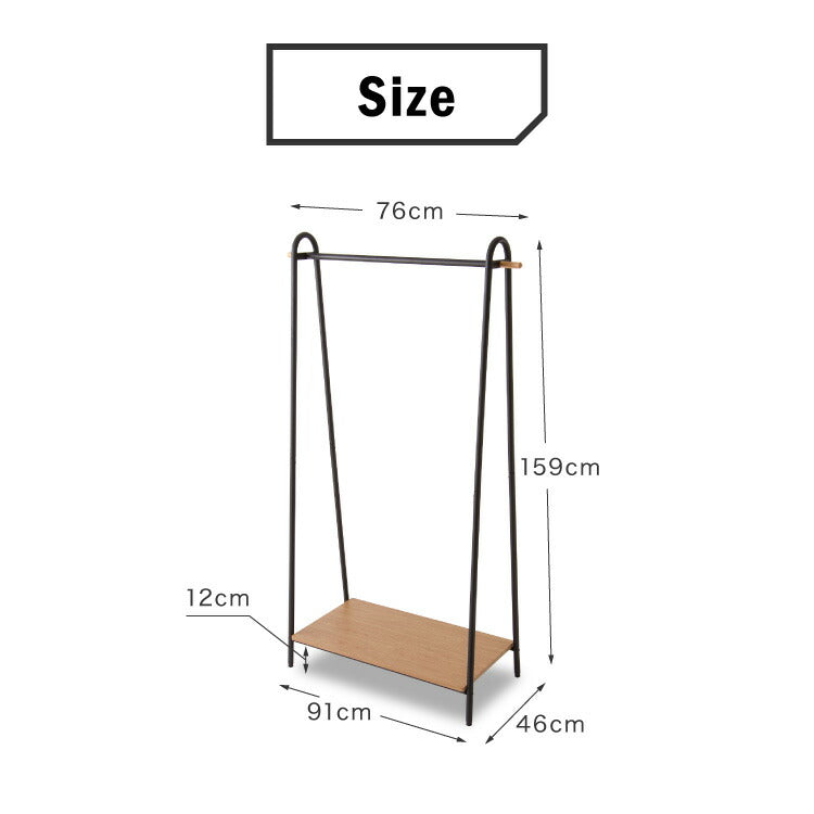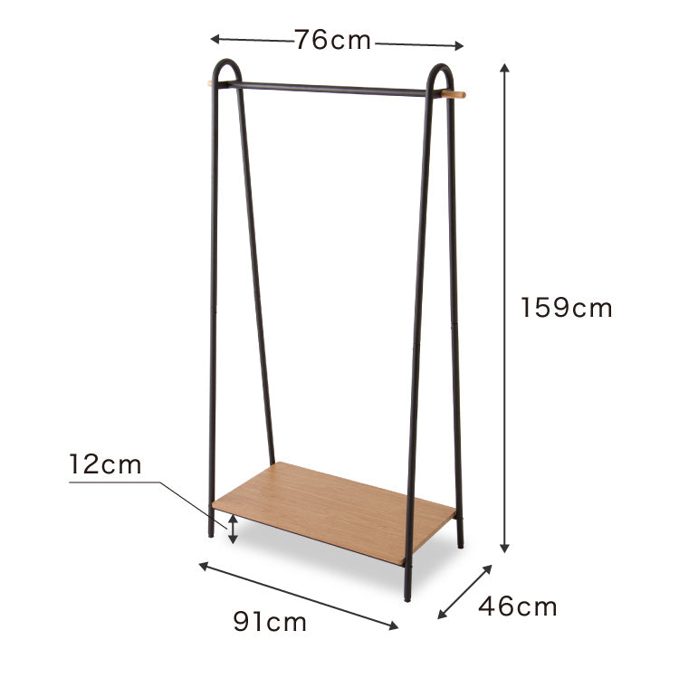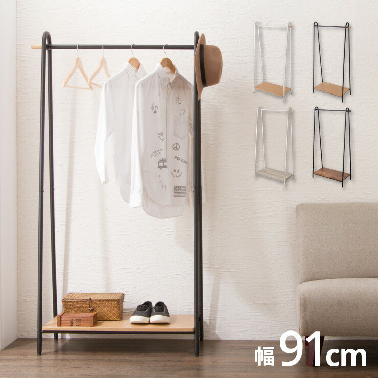ハンガーラック おしゃれ 幅91cm 奥行46cm 高さ159cm ワイドAタイプ 棚付き 組立式 ブラック ホワイト ナチュラル シンプル コートハンガー 衣類収納 洋服掛け 玄関 スリム コンパクト