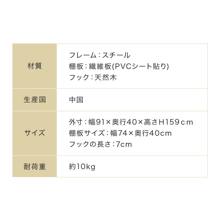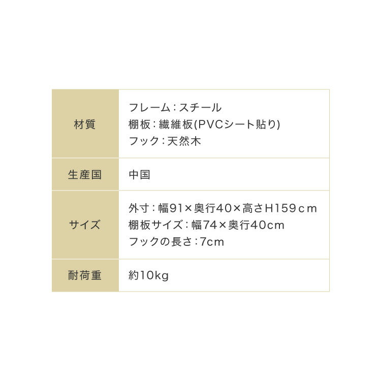 ・材質 スチール 棚板/繊維板(PVCシート貼り) フック/天然木