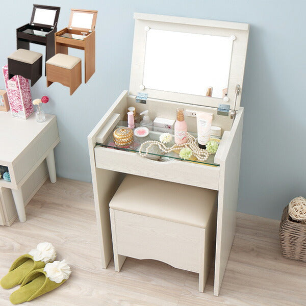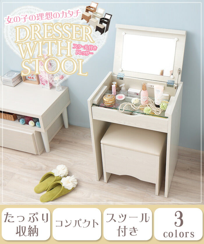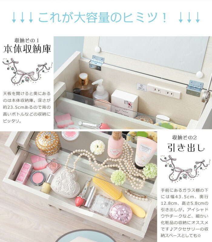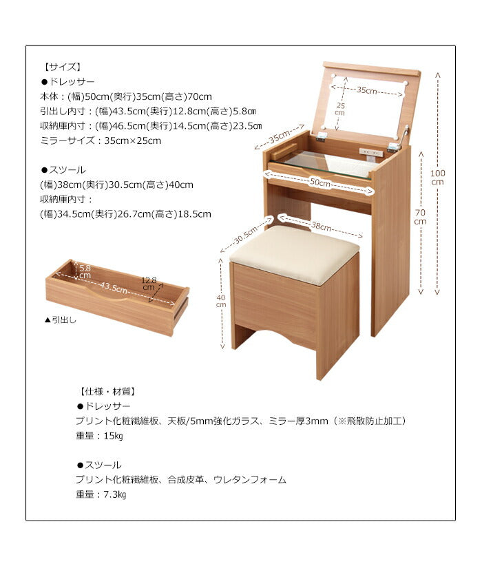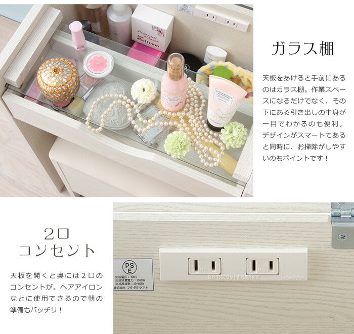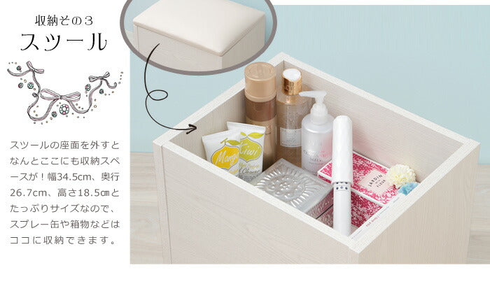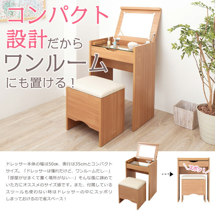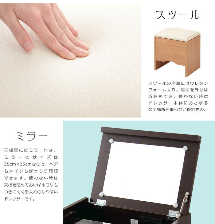 ドレッサー スツール 2点セット スツール付き DR-5070HC 鏡台 ミラー 椅子 化粧台 コスメ メイク 収納 ナチュラル ホワイト ブラウン(代引不可)