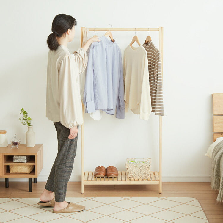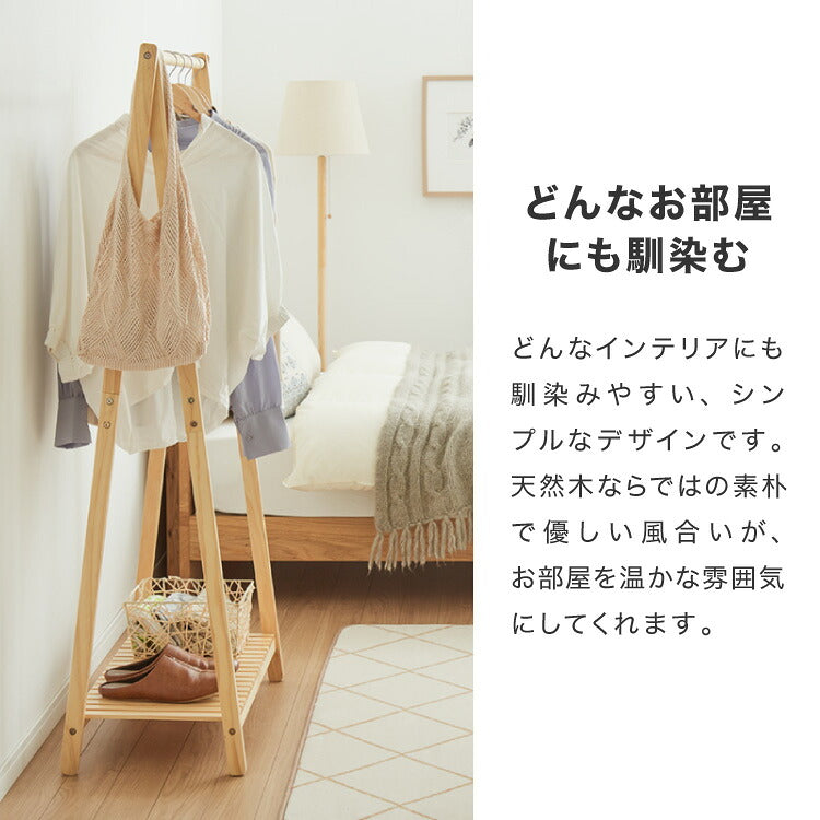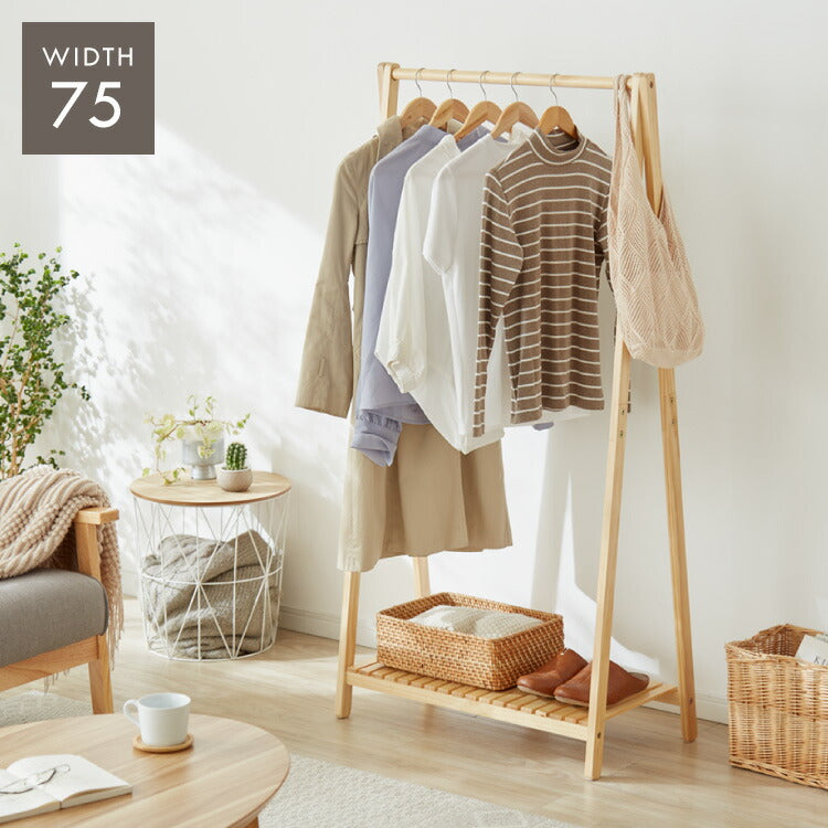 木製ハンガー棚付き 幅75cm 奥行38cm 高さ147.5cm ハンガーラック おしゃれ 棚付き 組立式 天然木 パイン材 シンプル コートハンガー 衣類収納 洋服掛け 玄関 スリム コンパクト(代引不可)