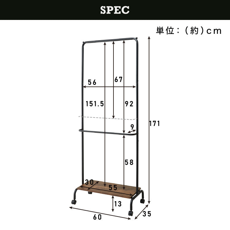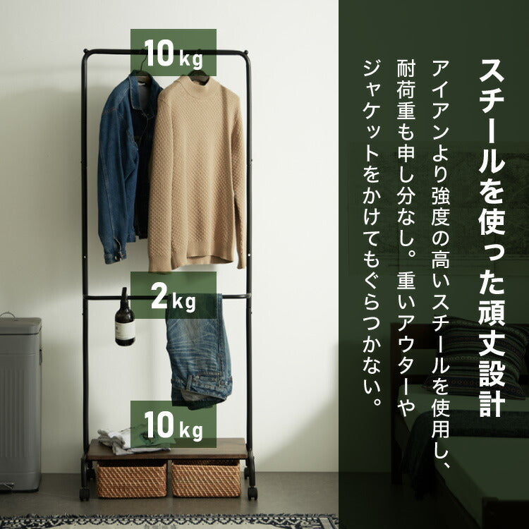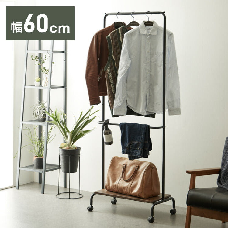 ハンガーラック スリム 2段 頑丈 幅60 省スペース コートハンガー ハンガーポール ワードローブ 棚付き キャスター付き 洋服収納 衣類収納 マルチハンガーラック ポールハンガー パイプハンガー