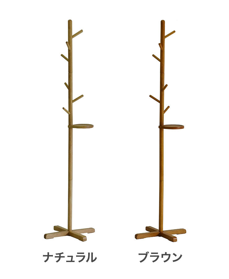 トレー付き ポールハンガー 木製 高さ165.5cm トレー付き 洋服ハンガーラック スタンドハンガー 洋服掛け カバン掛け 省スペース(代引不可)