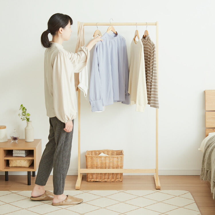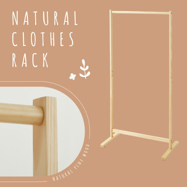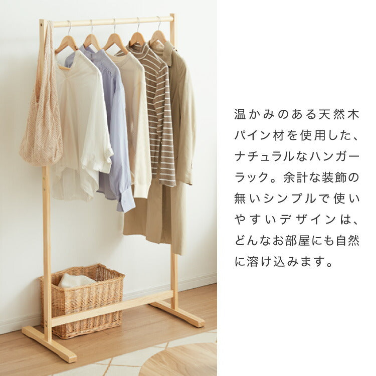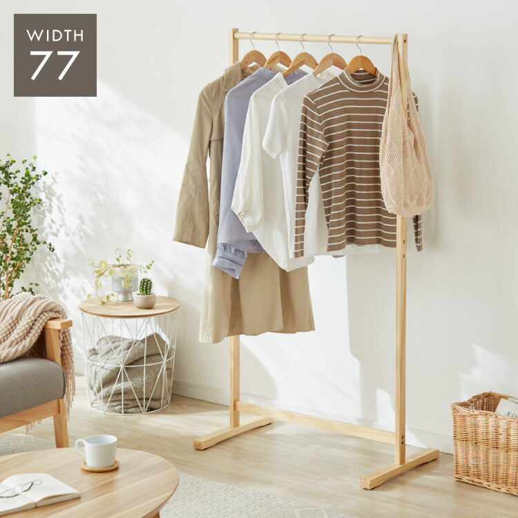 木製シングルハンガー 幅77cm 奥行44cm 高さ152cm ハンガーラック おしゃれ 組立式 天然木 パイン材 シンプル コートハンガー 衣類収納 洋服掛け 玄関 スリム コンパクト
