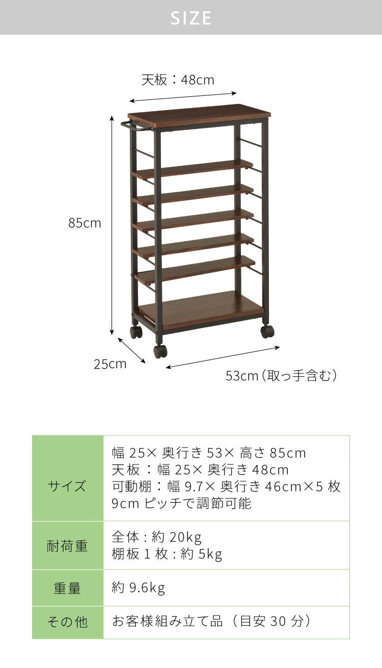 キッチンワゴン 幅25cm 棚位置自在 キャスター付き 高さ85cm 隙間収納 モダン 北欧 おしゃれ ダイニング キッチン リビング 新生活 整理 収納 収納ワゴン マルチワゴン おもちゃ箱【送料無料】