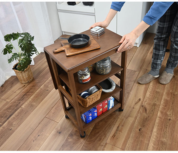 片バタフライワゴン 高さ70cm 高さ調整可能 キャスター付き ナチュラル シンプル 天然木 キッチン デスク周り おしゃれ モダン(代引不可)