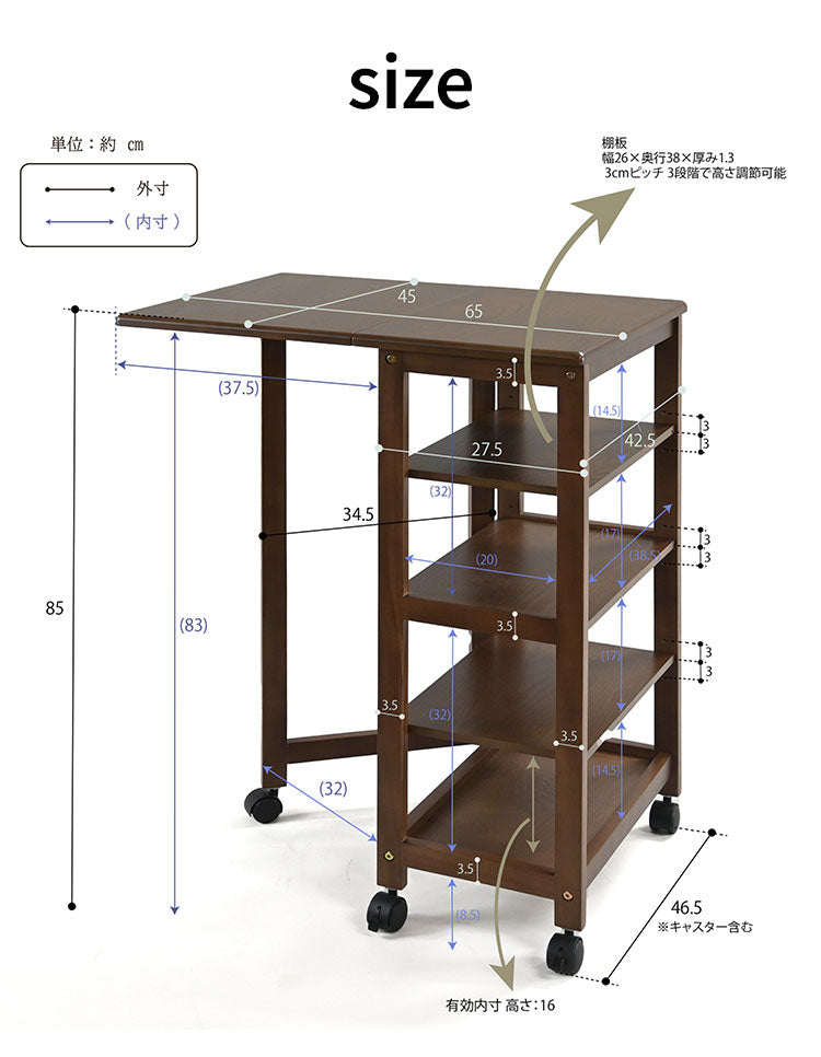 キッチンやデスク周りなどでマルチに活躍する片側のみのバタフライワゴンです。