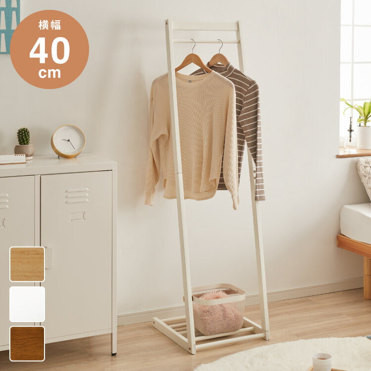 天然木 ハンガーラック 幅40cm 棚付き L型ハンガーラック 省スペース コンパクト スリム ナチュラル ハンガーラック 木製 ポールハンガー コートハンガー 洋服掛け 衣類収納 木製