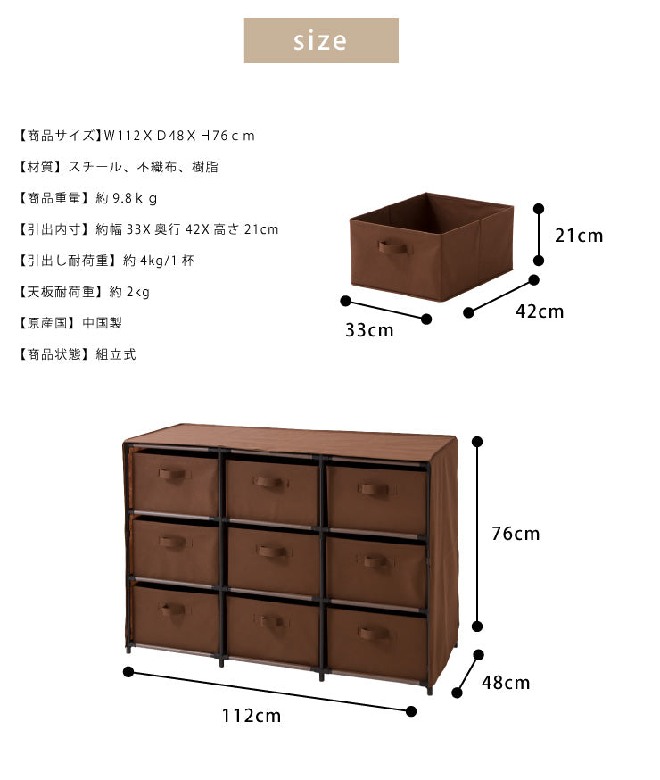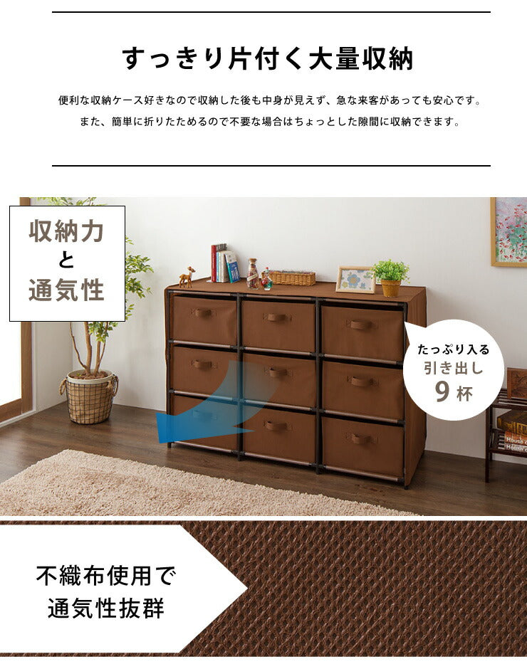 チェスト 大容量 衣類収納 ロータイプ 9杯 3段3列 不織布 組み立て簡単 引き出し たためる 子供部屋 収納 クローゼット ワードローブ タンス 箪笥 洋服タンス 洋たんす(代引不可)