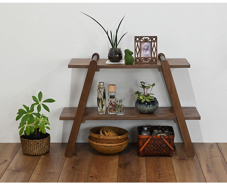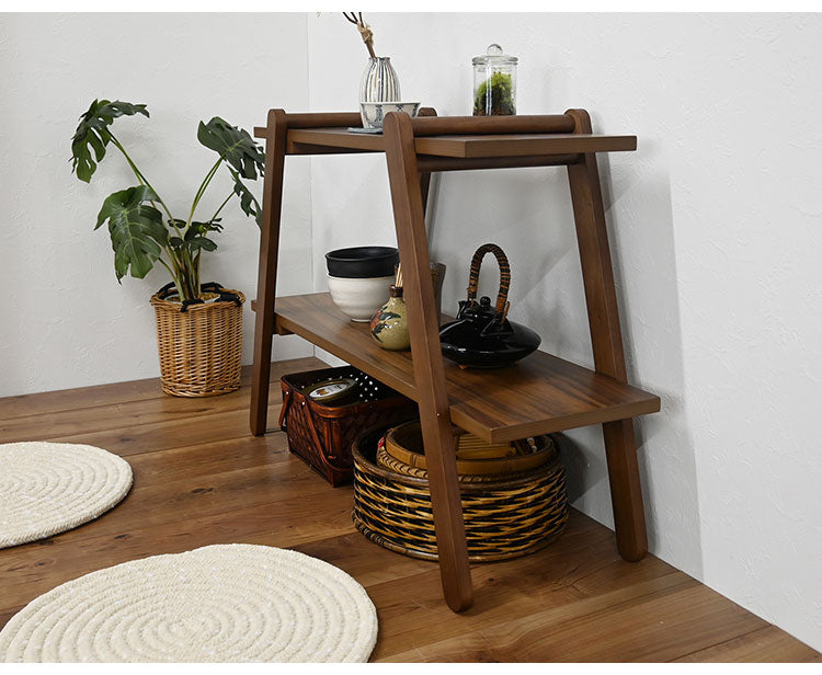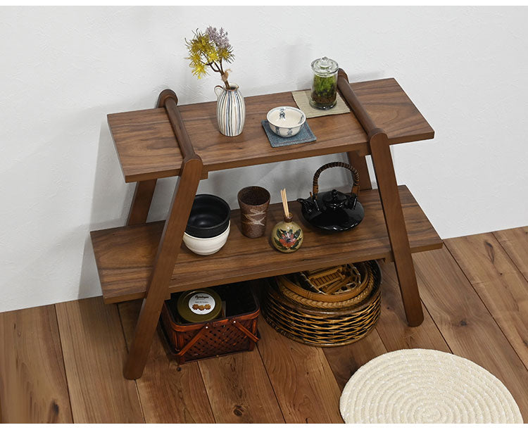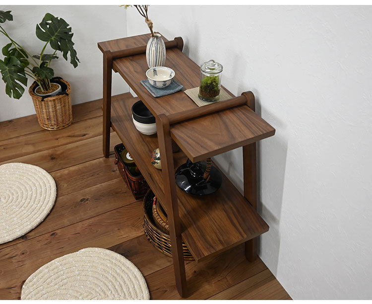 オープンラック2段 幅72cm 奥行27cm 高さ55cm 簡単組立て 工具不要 天然木 ウォールナット ナチュラル シンプル(代引不可)