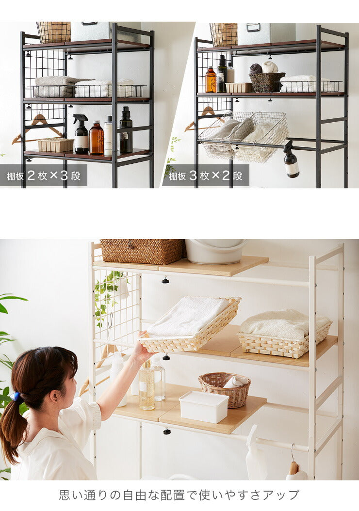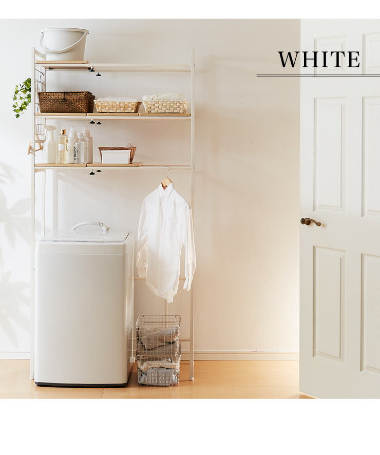 ランドリーラック 棚板自由自在 高さ調節可 モダン おしゃれ 伸縮式ランドリーラック 洗濯機ラック ランドリー収納 サニタリー収納 洗濯機収納 洗濯機 ラック 収納 省スペース 収納棚 洗濯物 脱衣所 洗面所 新生活