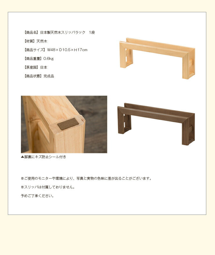 【商品名】日本製天然木スリッパラック 1段